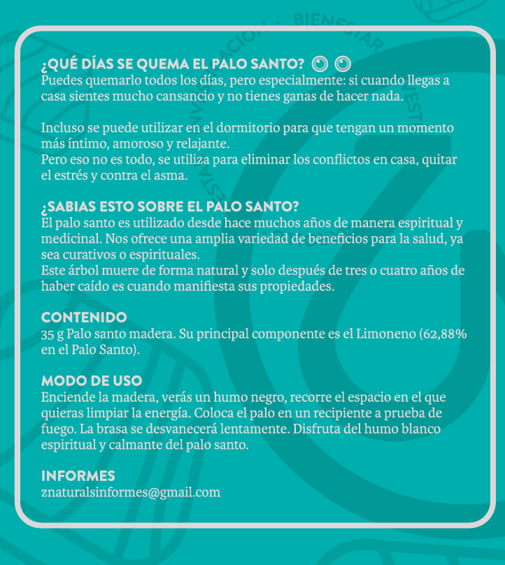 El incienso natural AmaZonia, elaborado con el árbol de Palo Santo, posee un intenso aroma cítrico gracias a su principal componente, el Limoneno. Este árbol muere de manera natural después de 3 años, manifestando sus propiedades de limpieza física y espiritual con fines sanadores. Un excelente aliado para tu hogar o trabajo.