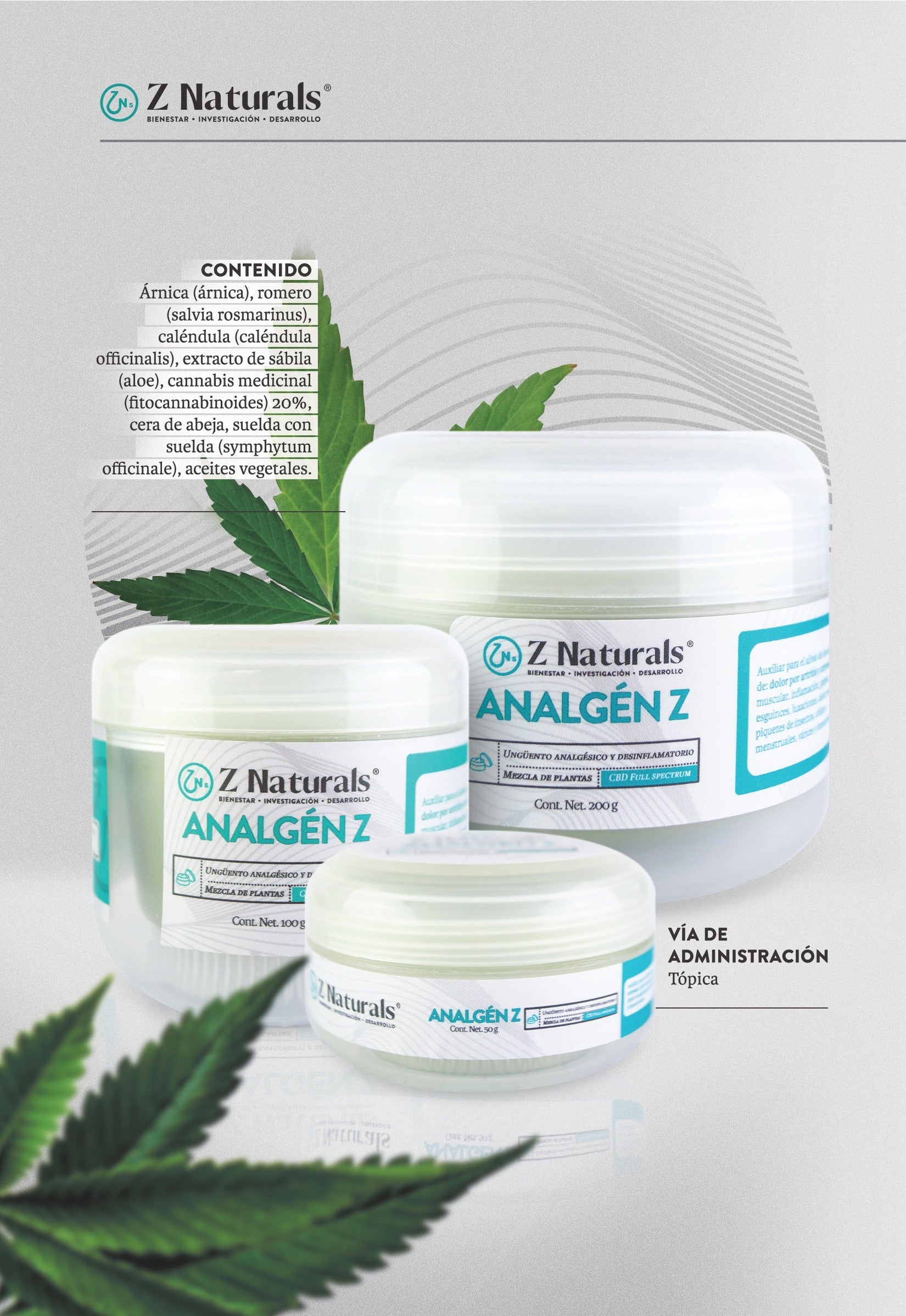 Esta mezcla de plantas medicinales junto con cannabis, que conforman el ungüento Analgén Z, es ideal para ayudar a mitigar los malestares de afecciones como la artritis y otras enfermedades. Además, es eficaz para disminuir dolores musculares y articulares gracias a sus propiedades analgésicas y antiinflamatorias. Olvídate del dolor molesto que afecta la rutina diaria.