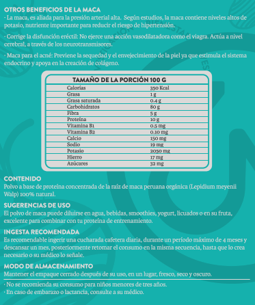 La maca peruana amarilla es un superalimento altamente nutritivo y energético. Rica en vitaminas y minerales, puede ayudar a mejorar la resistencia física y el rendimiento deportivo. También se ha relacionado con la mejora del deseo sexual y la fertilidad. ¡Incorpora la maca peruana en su dieta hoy mismo y disfrute de sus beneficios!